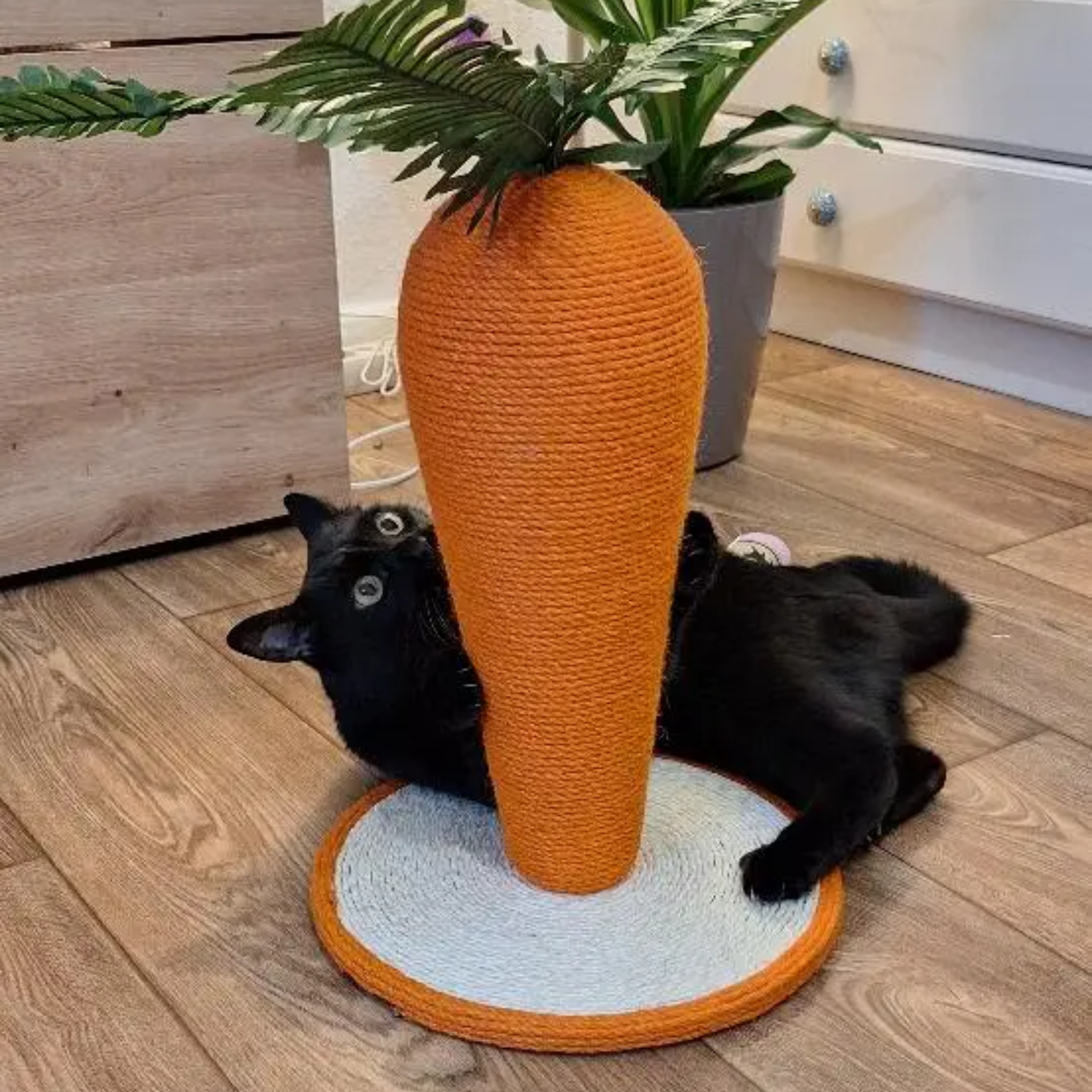 Cats are going to scratch no matter what, and this gives them the perfect place to do it. The Carrot Scratcher is tall, sturdy, and made from natural sisal that feels good on their claws while keeping your furniture safe.
