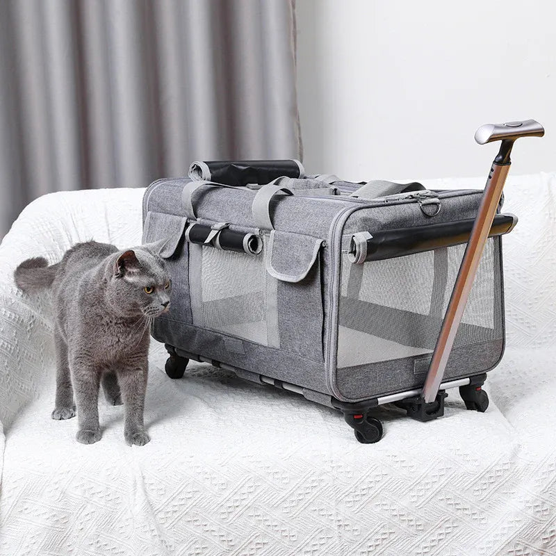Forget struggling with heavy cat carriers! The Cat Luggage is here to make travel smooth and effortless. With its breathable design, secure closures, and comfortable rolling system, this carrier lets you take your cat anywhere without the hassle. It's time to upgrade to a smarter, stress-free solution!