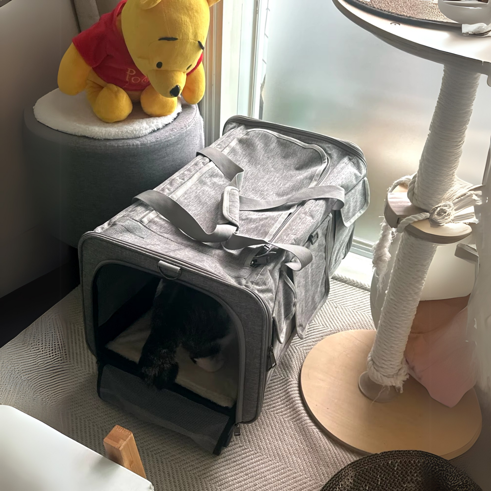 I didn’t think I’d love it, but the foldable design is actually so handy. Plus, my cat has more room than in other carriers we’ve used.