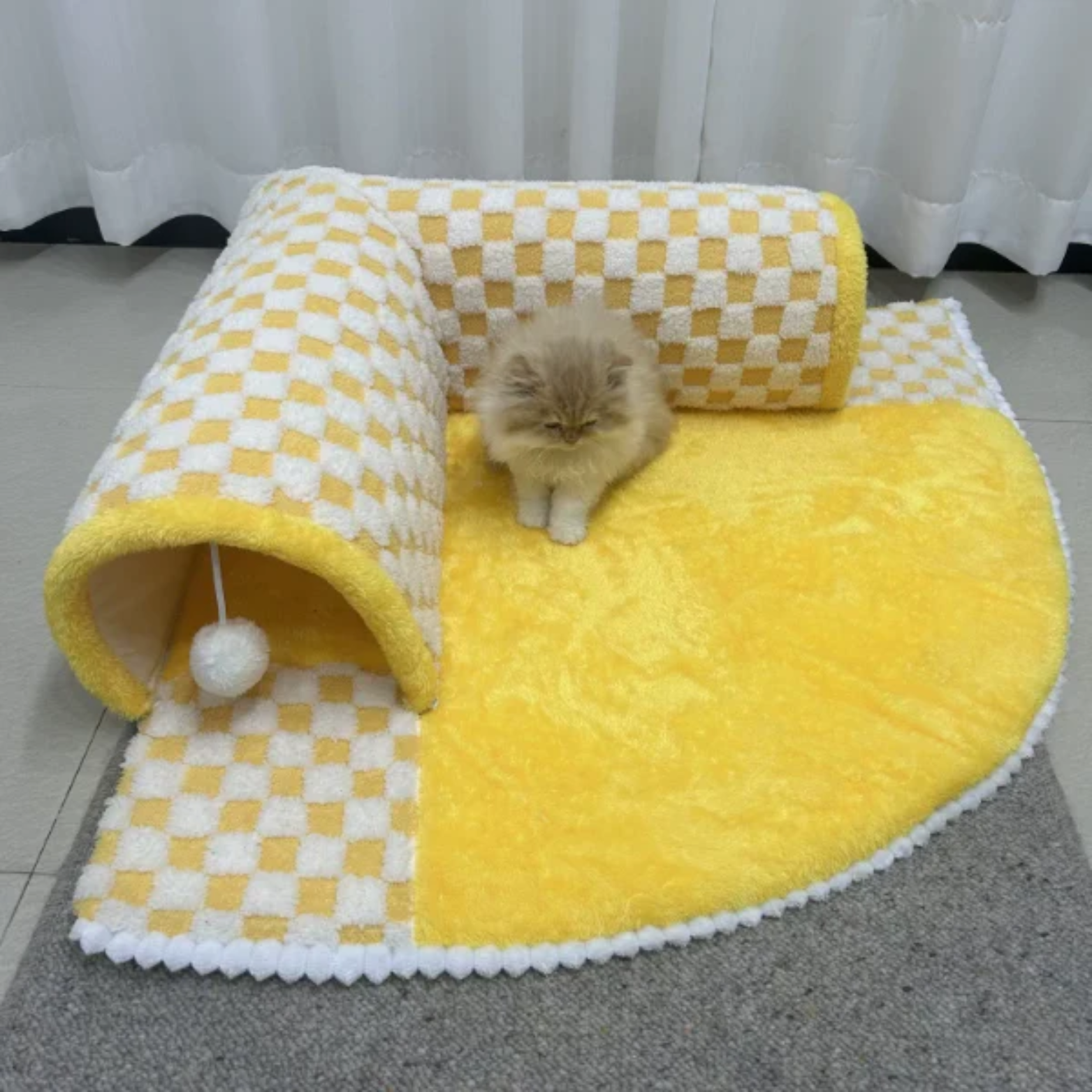 The Tunnel Bed isn’t just a place to sleep, it’s an all-in-one entertainment and relaxation hub for your cat. Featuring a soft, plush surface for naps and an engaging tunnel with dangling balls for play, it’s the ultimate haven for your feline friend.