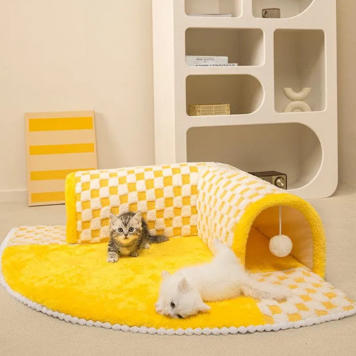 The Tunnel Bed combines functionality with comfort, making it the ultimate lounging and play space for your cat. With a spacious plush sleeping area and a fun tunnel that’s perfect for hiding and chasing, this bed provides endless entertainment while keeping your cat cozy. Designed to fit seamlessly into your home, it’s the perfect mix of practicality and style.